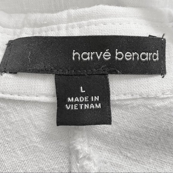Harve Benard White Long Linen Tunic Button Down Dress Shirt
