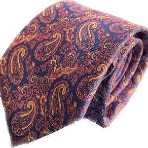Made with 100% woven silk, this tie creates a splash of classic colour and texture. The crimson and burnt orange paisley pairs perfectly with any light to mid-grey suit or blue blazer. Burnt orange and crimson are a classic colour palette of any gentleman style, especially paired with rich umber brown accessories. Journey with vibrant confidence from boardrooms to formal or casual occasions.