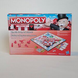 Hasbro Games Canadian Tire 100th Anniversary Special Edition Monopoly features Canadian Tire retailer locations on the gameboard, properties are Cities, Distribution Centres and Services, and the Monopoly Money features custom artwork