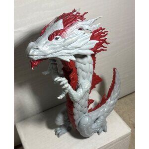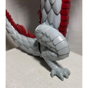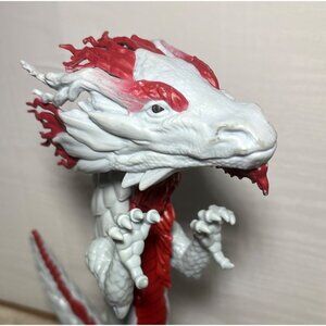 A decorative dragon figurine featuring intricate detailing with a red and white color scheme. Crafted for collectors or as a striking addition to decor.