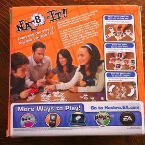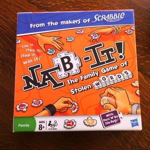 Hasbro's Nab-It! is a word game where players create words in a crossword fashion by connecting letter tiles.