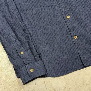 Hast Paris Searsucker Shirt Long Sleeve Button Down Blue Cotton Medium