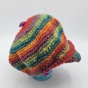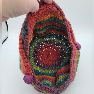 The front red band isn't tacked down but that could be done by the buyer. It is anchored by the 2 side purple buttons.