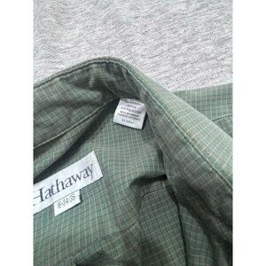 Hathaway Button Down Shirt Men's Size 16 Check Long Sleeve Solid Causal Green