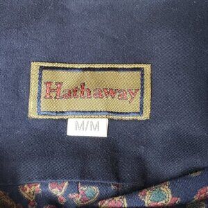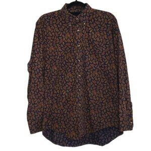 Hathaway Paisley Button Down Dress Shirt Size Medium Navy Gold Red Men's