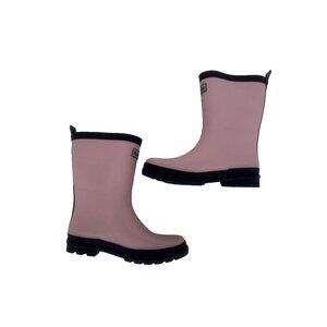 Step out in style with these adorable pre-owned Hatley rubber boots! Perfectly designed for your young adventurer, these classic kids' boots are not only practical but also a fashion statement. With a playful pink upper and a durable navy blue rubber bottom, these boots will keep little feet dry while splashing in puddles and exploring the great outdoors.