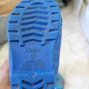 Hatley rain boots with cute dogs print, toddler size 7. Waterproof, durable, and perfect for rainy days. Pre-owned, in good condition.