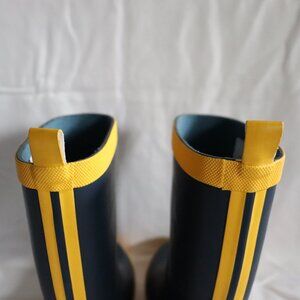 Hatley Kids Classic Slip On Sz 1 Navy Yellow Outdoor Matte Rubber Rain Boots