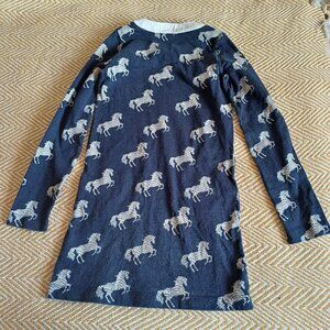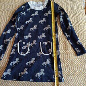 Cute Hatley Navy Blue Horses Dress for Girls. Size 8. Made in India. Pockets and buttons at neck