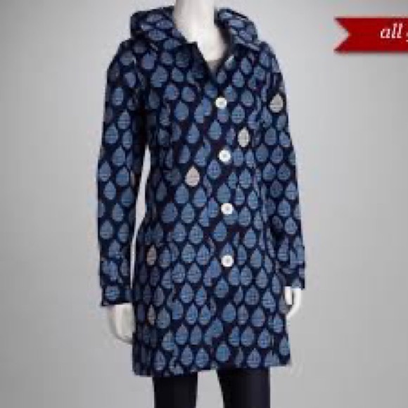 Be ready for spring in this cute Hatley coat. I purchased and did not wear as the sleeves were too long and I never got around to hemming. I bought it on sale as the hood was missing. Cotton still crisp as it has never been worn or washed.