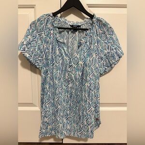 Hatley Ripples Blue Blouse Size Small A- Line Ruffles Buttons Womens