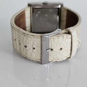 Pre-loved (I personally purchased this watch about 15 years ago) - some wear and tear on metal and leather strap /some discolouration on inside of strap