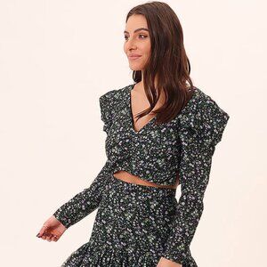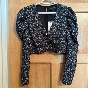 Poly blend. Imported. Dry clean recommended. Hidden side zipper closure. Puff sleeve. Back keyhole with loop button closure. Ruched bust detail. Item not sold as a set. Never worn.