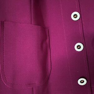 Couleur fuchsia (la 1ère photo est plus représentative), boutons blancs et noir avec pointe d'orange