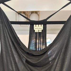 Airy Haute Hippie black modal tank / camisole. Size M. Spaghetti straps and wider back column running between one's scapula for a sexy look! Dress it up or down as you like!