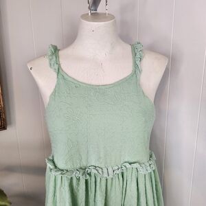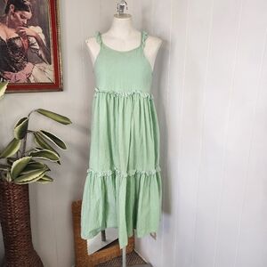 Haute Hippie Kids Green Peasant Tiered Boho Ruffle Dress