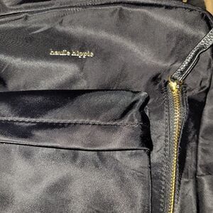Stylish black backpack by Haite Hippie. Features multiple zippered pockets. Adjustable straps for comfort. In excellent, new condition. unfortunately missing the crossbody strap.
