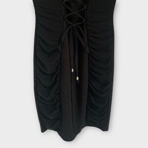 Haute Monde Black Ruched Lace-Up Bodycon Mini Dress Sz M
