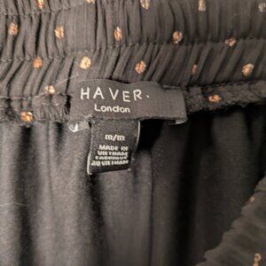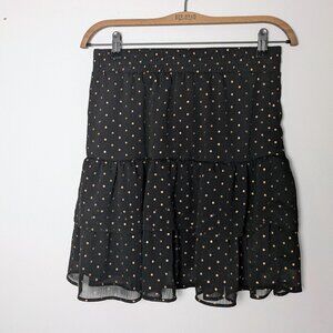 Cute light and flouncy tiered black skirt with rose gold polka dots. 100% polyester.