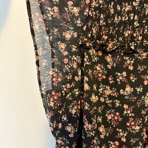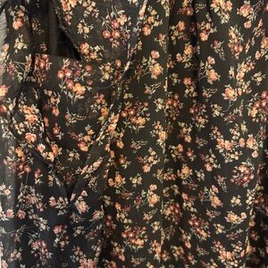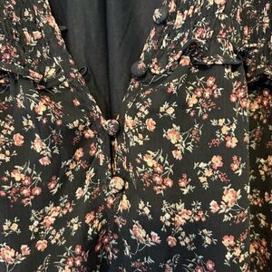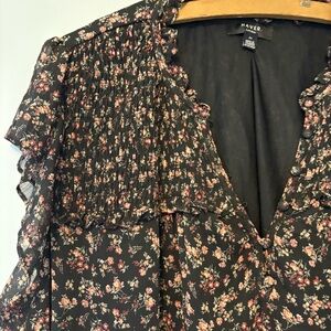 Haver London Woman’s 2X Y neck Sheer Black Micro Floral Blouse Plus Size