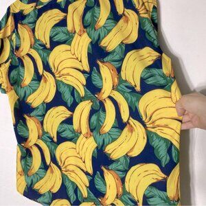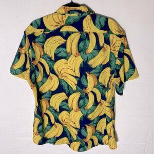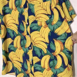 Hawagoos Yellow Green Banana Print Casual Short Sleeve Button Up Shirt L
