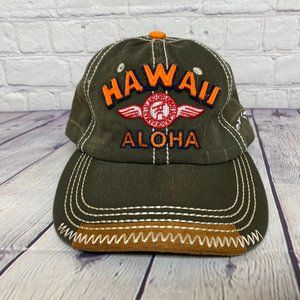 Hawaii Aloha Dad Hat Cap Strap Back Olive Green Brown Island Crew Casual Beach