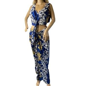 Hawaiian 3 Piece Set Pants Bra Top Floral Wrap Blue White Size 12 Vintage