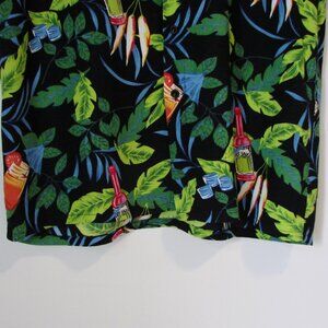 Hawaiian Button Shirt Loose Hot Sauce Drinks Cocktails Black Green Blue Medium