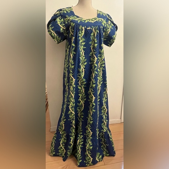 The prettiest Vintage Kalena Fashions of Hawaii women's Muumuu Maxi Dress! Has one side slit pocket, Sweetheart neckline, split sleeves and 9” ruffle at hem. This beauty will last another 50 years!