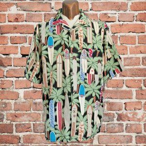 Hawaiian Shirt Maui Maui Surf Company Button Front Surf Boards Palm Trees Sz Lrg