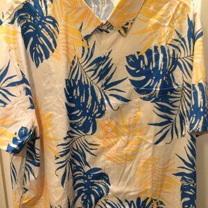 Man's Hawaiian shirt, floral print, white, blue, yellow. 3XL New, unworn.