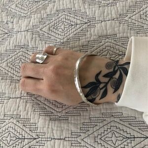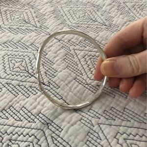 Hawkly hand-carved driftwood bangle in sterling silver handmade in Canada (measures 2.25 inside diameter").
