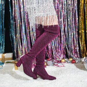 Hawkwell Women Purple Chunky Thigh High Over The Knee High heel Boots Pointy toe