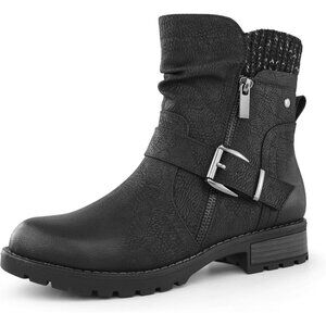 Hawkwell Womens Black Fashion Combat Ankle Booties With Side Zipper Buckle