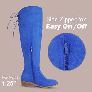 Hawkwell Women's Blue Low Flat Heel Thigh High Over The Knee Fashion Boots