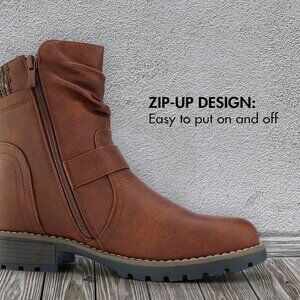 ZIP-UP DESIGN: Buckle straps decoration,never out of trend. The combat boots with inner zipper functions for an easy on-and-off wear and adds decoration to the boot, adjustable buckle allow a flexible fit.