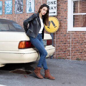 HIGH QUALITY: Premium textured synthetic leather uppers with a round toe, keep you feeling dry and looking chic with straps and metal buckles.
