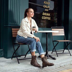 HIGH QUALITY: Premium textured synthetic leather uppers with a round toe, keep you feeling dry and looking chic with straps and metal buckles.