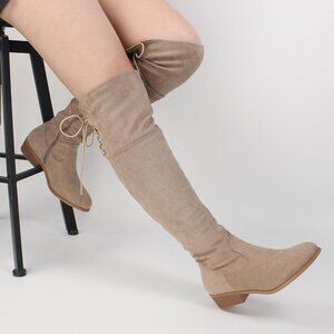 Hawkwell Women's Khaki Low Flat Heel Thigh High Over The Knee Fashion Boots