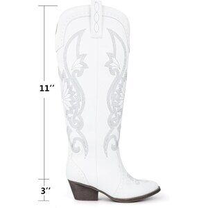 Cowgirl boots designed with exceptional craftsmanship, intricate details, and authentic styling.The breathable inside Fabric lining,cushioned insole, rubber heel, and 2.17-inch stacked heel, scream comfort.This is a style you can wear all day without worrying about getting tired.