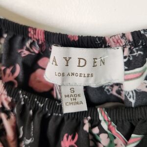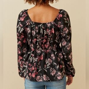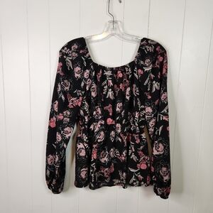 Hayden Los Angeles Floral Foliage Print Twist Front Peplum Top Long Sleeve Small