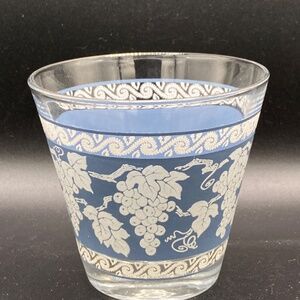Hazel Atlas Rocks Glasses x 4 Pattern "ATC41" matt blue with white grapevines, silver rim. 8fl oz./250ml VTG 1960's USA Excellent vintage condition, approximate size: 995g/set;8.5cm/3.4" H x 9cm/3.6" D.