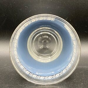 Hazel Atlas Rocks Glasses "ATC41" matt blue & white silver rim 8oz VTG 1960's