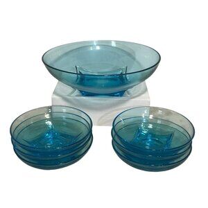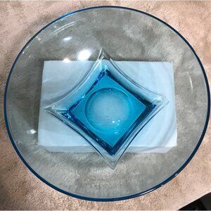 Hazel Ware Salad Bowl Set Capri Colonial Azure Blue Glass Square Base Elegant