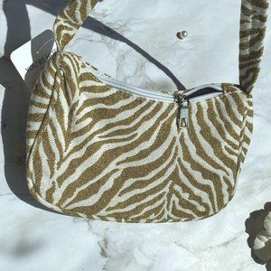 Hc Boutique Women's Tan & White Zebra Striped Shoulder Bag