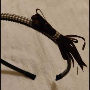 1) cute brown and off-white headband with ribbon bow