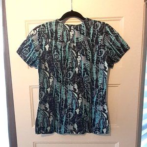 Health Pro Women's Scrub Top - Classic Blue Pattern (Size Small)