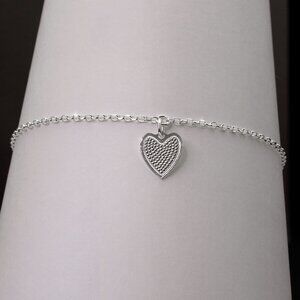 This genuine sterling silver dainty anklet features a simple heart charm.