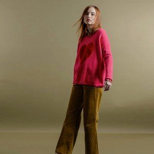 A cute oversized heart appliqué adorns this knit sweater and is finished with ribbed trims for a snug fit. Color is Hot Pink. Size XS.