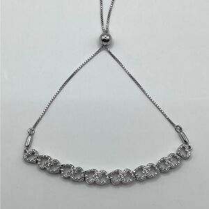 Heart Bolo Bracelet 925 Sterling Silver Accented Diamond